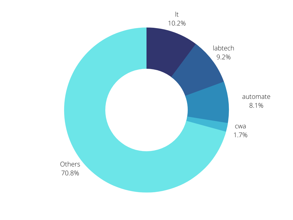 In total, 29.3% of on-premise Automate servers are named after the application itself. Other common subdomains included “support”, “remote”, “monitor”, and “connect” — and more generic names such as these are ideal for preventing enumeration of the specific application.